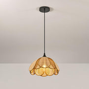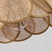 Introducing the Bloom Rattan Pendant Lamp, a stunning lighting fixture that captures the delicate beauty of blooming flowers. Crafted with a blend of metal durability and artisanal rattan charm, each shade is meticulously designed to resemble flower petals. The warm golden tone of the woven vines creates a cozy ambiance when lit.