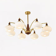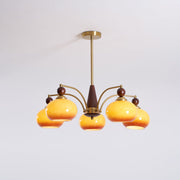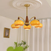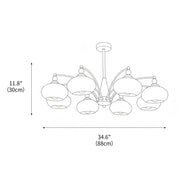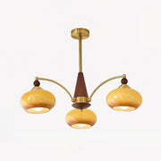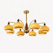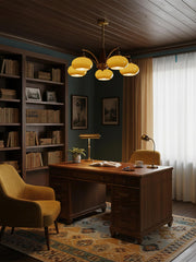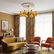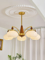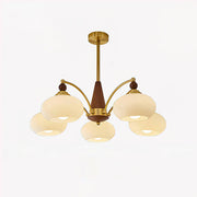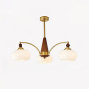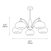 This Chandelier perfectly blends vintage charm and modern sophistication, enhancing the overall aesthetics of any interior space. Its striking design adds a warm and unique touch to any room. Featuring a high-quality brushed brass body and a soft, rounded glass shade, the lamp emits a warm glow, creating a comfortable and inviting atmosphere.