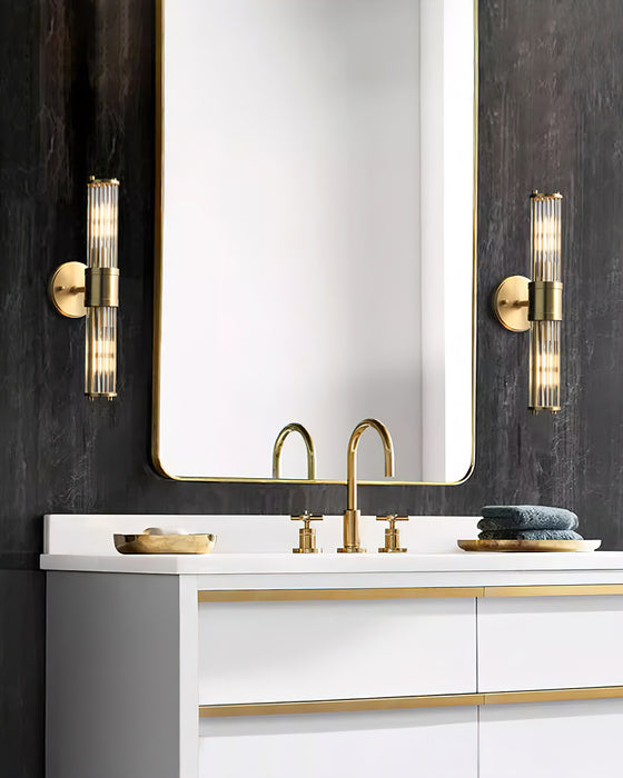 Introducing the Claridges Wall Lamp by Mooiehome—a sleek and sophisticated lighting fixture that combines modern design with timeless elegance. Crafted from high-quality aluminum and clear glass, this wall lamp features a minimalist cylindrical design with vertical glass rods that create a stunning play of light and shadow. The polished metal accents add a touch of luxury, while the transparent glass ensures a bright, airy glow that enhances any space. Perfect for adding a contemporary flair to hallways, living rooms, or bedrooms, the Claridges Wall Lamp is both a functional and stylish addition to your home decor.