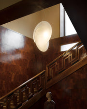 As one of the newest additions to the designer's collection of modern pendant lighting, the Cocoon Pendant Lamp effortlessly illuminates any space with soft, diffused light. Its unique design captivates the eye, with rings appearing to push through the membrane, yet leaving the interlocking space concealed, inviting imagination to take flight. Illuminate your space with the Cocoon Pendant Lamp and experience the perfect blend of form and function.