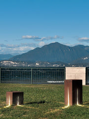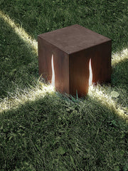 The Crack Cube Garden Light is an elegant outdoor statement piece that features a rust-colored frame. It provides a sophisticated light source to enhance and illuminate any garden or backyard. This stylish light is sure to bring a unique and modern flair to any outdoor space.