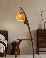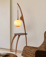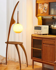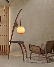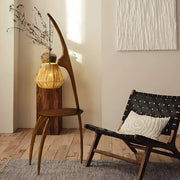 The Curved Mantis Arm Floor Lamp by Mooiehome combines organic design with modern functionality. Crafted from wood, fabric, and glass, this lamp features a unique curved arm and a soft-glowing spherical shade that adds a warm, inviting ambiance to any room. Its elegant and sculptural form makes it a striking decorative piece, while providing ample lighting. Perfect for enhancing contemporary or eclectic interiors.