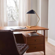 With a shell-shaped metal shade and an airy, sculptural T-shaped base, our Curvilinear Table Lamp is our modern take on classic mid-century style. Its head tilts so you can direct light where you need it most, making it a smart choice for reading nooks or desks.