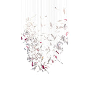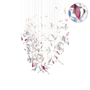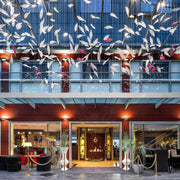 The romantic glass feathers flying gently in the air in the lobby have a magical ability - their beauty can away all worries and sorrows. They sweep you across your memory and fill your soul with a warm feeling. Inspired by feathers - their lightness and softness. These characteristics are captured in glass, which is both soft and fragile, strong and heavy, mostly shiny but with red shards of glass here and there. When daylight shines in through the skylight, the light shines on the surface of the glass components, and the floating light illuminates the space of the shopping mall.