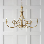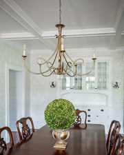 The height of artistic elegance creates gallery inspiration and a fine art feel suitable for a glam space. The Double Twist Chandelier inspires with fluid loops and lines formed by a metal frame with exquisite accents. Soft lighting from candelabra bases and a decadent crystal ball icon tell the story of a work of art.