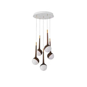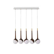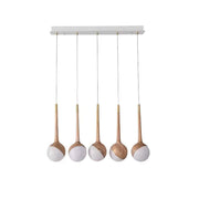 The Water Droplet Chandelier is a stylish and modern lighting fixture inspired by the natural elegance of a water drop suspended in mid-air. Each pendant light features a beautifully crafted wooden stem that tapers gracefully into a rounded, creamy white acrylic shade, resembling a water drop about to fall. The smooth transition between wood and acrylic creates a harmonious blend of materials, while the soft, diffused light creates a warm and inviting ambience.