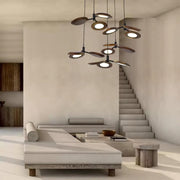 Inspired by the soft flickering light of fireflies on a summer night, the Firefly Chandelier captures the essence of natural elegance. The design mimics the casual yet harmonious flight of fireflies, with each wooden disc suspended in mid-air, emitting a warm and inviting glow.