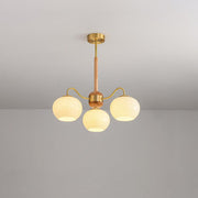 This Hans Bergstrom Chandelier is a sophisticated fixture. Its ash wood body is complemented by brass accents, and the white glass corrugated lampshade adds a modern flair. Crafted with exquisite detail, this chandelier adds style and elegance to any space.