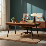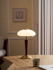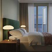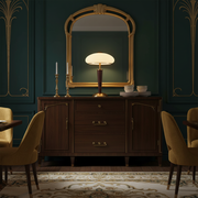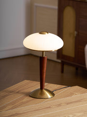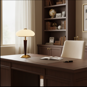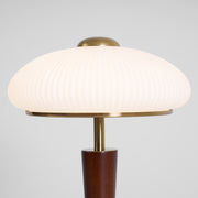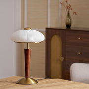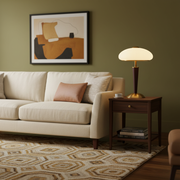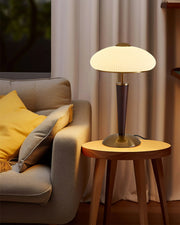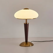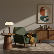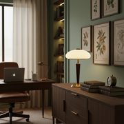 The Herman Table Lamp from Mooiehome blends mid-century charm with modern refinement. Its gently fluted metal dome emits a soft, diffused glow, while the tapered wooden stem adds a warm, sculptural presence to any tabletop. Anchored by a sturdy gold-toned base, this lamp is ideal for bedside lighting, reading nooks, or accent tables. The contrast between the smooth metallic finishes and rich wood texture gives it a timeless appeal—perfect for interiors that value both function and character.