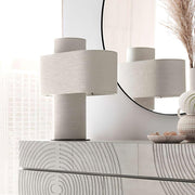 Illuminate your space with our Heron Glowing Table Lamp. The ivory linen fabric gently diffuses warm light through the drum frame, creating a soft and inviting glow. A versatile addition to any room, this sculptural lamp is ideal for the bedside table.