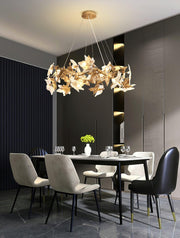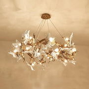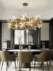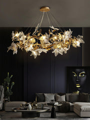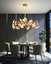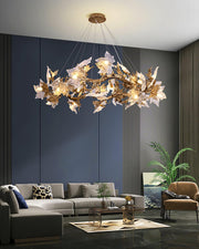 This Maple Leaf Brass chandelier has the same innovative elegance and sophistication to be at one with nature as any chandelier, but with a contemporary influence that enhances its style and versatility. Showcasing a collection of beautifully decorated maple leaves around a brass tree branch frame, once turned on, hidden Light pass through the elegant maple leaves for a stunning sparkling ambience.