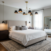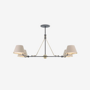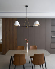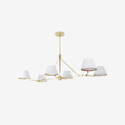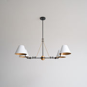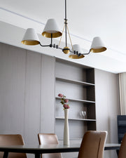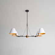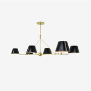 The "Midnight Symphony Chandelier" is designed to evoke the elegance and mystery of a classical music performance under the cover of night. Its multiple dark-hued shades, arranged in a dynamic, sweeping formation, mimic the movement and harmony of an orchestra. The golden interior lining of each shade casts a warm, inviting glow, perfect for enriching dining rooms or sophisticated entryways with a touch of drama and sophistication.