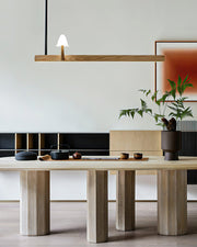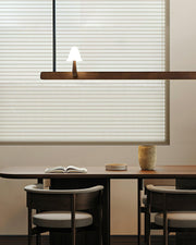 The Mushroom Beam Chandelier perfectly blends natural elements with minimalist design. The wooden beam provides a clean and elegant base, while the small mushroom-shaped lampshade at one end adds a whimsical touch. The soft white lampshade emits a warm glow, creating a cozy atmosphere perfect for the dining room, kitchen or living room. The contrast between the smooth beam and the playful mushroom decoration brings a unique personality to the lamp, making it the perfect blend of nature-inspired design and modern simplicity.