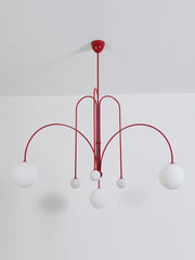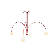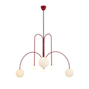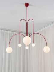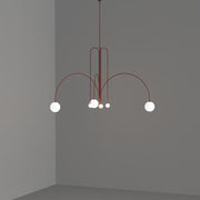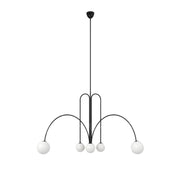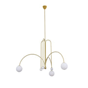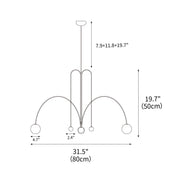 The design of this lamp is simple and modern. It uses a curved metal bracket and multiple suspended spherical lampshades, presenting an elegant sense of balance and movement. The color of the metal frame forms a sharp contrast with the white lampshade, adding a touch of fashion and art to the space.