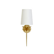 Delicate yet striking, the Petaline Wall Lamp brings a touch of floral-inspired elegance to any space. Crafted from finely detailed brass petals that bloom beneath a soft fabric shade, this sconce adds both warmth and charm to bathrooms, dressing areas, or entryways. The graceful silhouette and refined materials create a balance of romantic beauty and timeless sophistication—perfect for interiors that embrace both softness and structure.