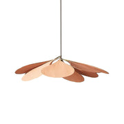 The unexpected combination of metal, and fabric in a floral and airy suspension. To the sleekness of a teardrop-shaped petal, the designer adds an homage to the retro ceiling fans of louvered bedrooms. This petal pendant plays subtly with light, diffusing a soft clarity in the room and delicate shadows on the ceiling.