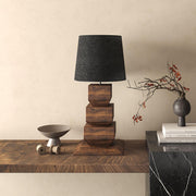 This exquisite piece features a base of meticulously carved wooden blocks, each one stacked with precision to create a harmonious cascade of organic beauty. The rich, deep grain of the wood adds a touch of rustic sophistication to any room, making it an ideal addition for those who appreciate the warmth of nature-inspired elements in their decor.