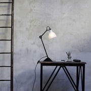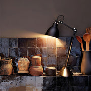 The Versa Glide G205 Table Lamp impresses with its simple, sturdy and very ergonomic design. The basic shape has neither screws nor welded joints. The functional beauty of the lamp, especially the design of details such as the arm, stem, bracket and base, is truly original and far ahead of its time. It fits perfectly on a table, sideboard or carriage. The articulated arm and lamp head direct the light exactly where you want it, providing almost unlimited lighting options.