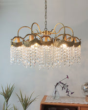 The Vienna Fringe Chandelier captures the opulence of Old World glamour with a dramatic cascade of hand-cut crystals draped beneath a sculpted brass frame. Inspired by classical European design, its ornate fringe detailing and radiant shimmer create a breathtaking focal point in any room. Perfect for dining rooms, foyers, or boutique-style interiors, this chandelier brings vintage drama and timeless elegance into the modern home.
