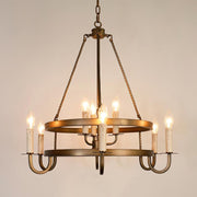 Its metal structure and retro chain suspension embody a rough industrial aesthetic, while the circular layout and evenly distributed light sources bring a perfect fusion of tradition and modernity. This chandelier is designed to bring a historical atmosphere and warm lighting to interior spaces.
