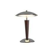 The Volos Dome Table Lamp by Mooiehome exudes retro-futuristic charm with a modern twist. Its sleek metal dome shade casts a focused downward glow, ideal for task lighting or creating a cozy reading corner. The rich wood column adds warmth and contrast to the polished metal base and cap, while a subtle glass diffuser softens the light for added comfort. With its sculptural silhouette and timeless palette, the Volos Lamp is a standout piece for desks, nightstands, or accent tables—where design meets function in the most refined way.