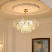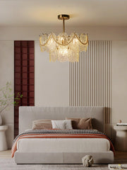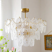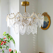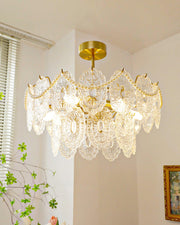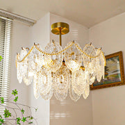 Gleam with beauty and luxury! The Wave Pearl Chandelier is bursting with a vibrant and captivating design. Its combination of wave shapes and circles gracefully reflect a three-dimensional sense of richness. For a comfortable and non-dazzling light, its pearls and golden metal are harmoniously weaved together for an elegant and modern look.