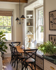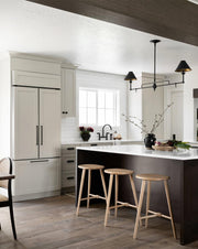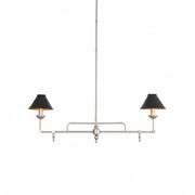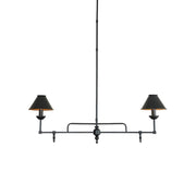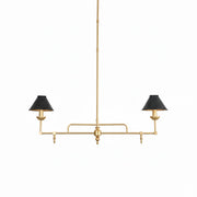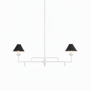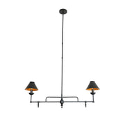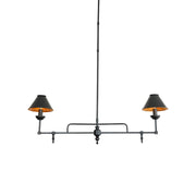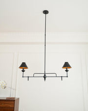 The Yanfu Linear Chandelier embodies the essence of sophistication with its striking contrast of colours and textures. Its design features a linear, clean black frame that supports a double-conical lampshade, while the gold interior adds a touch of elegance. The chandelier's structure is both simple and bold, and is designed to cast a warm and inviting glow over the kitchen island or dining table.